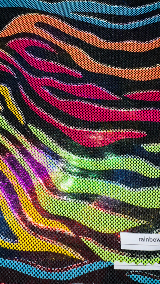 Fantastic Zebra Rainbow design metallic nylon spandex 4-way stretch 58/60” High quality fabrics by AlexLAFabrics