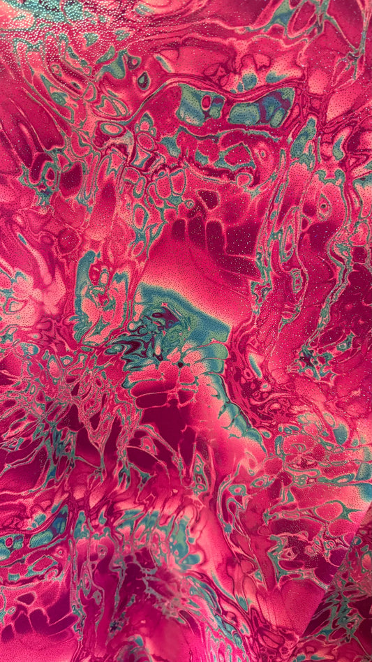 New Modern Abstract Lava Magma Design With Hologram foil nylon spandex 4-Way Stretch 58/60” Sold By The YD. Ships Worldwide From Los Angeles