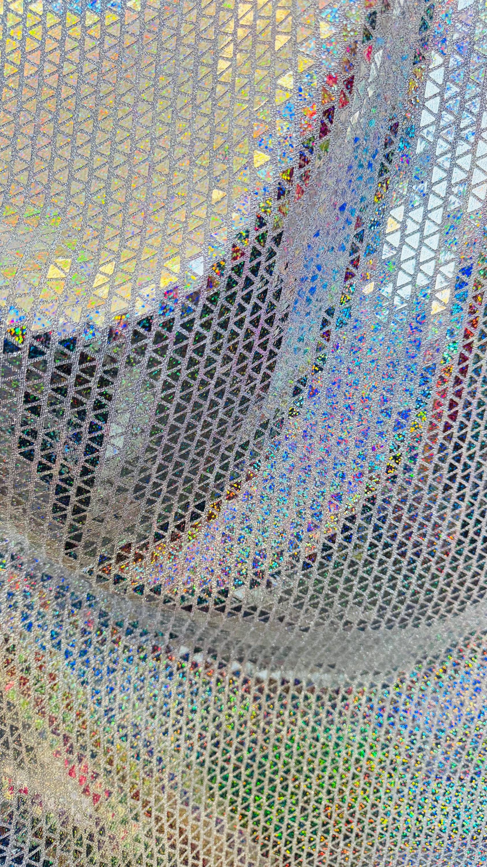 NEW triangle design metallic spandex 4way Stretch 58/60" Sold by the YD. Ships worldwide from Los Angeles California USA.