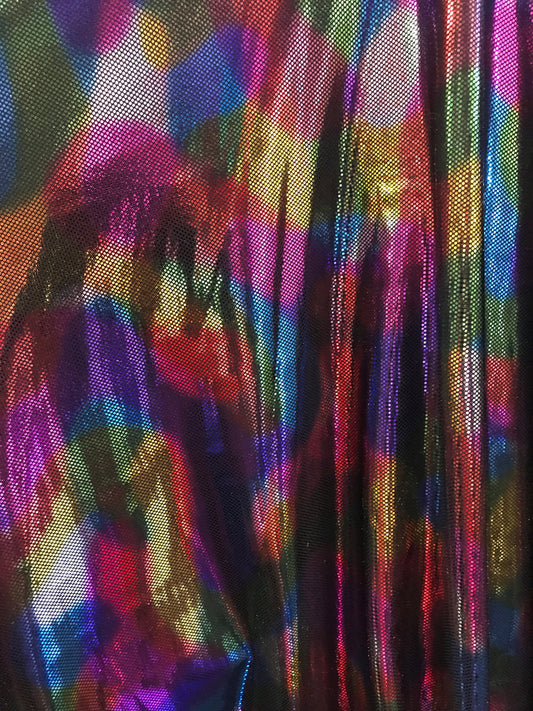 Camouflage multicolor metallic nylon spandex 4way stretch 58/60" Sold by the YD. Ships worldwide from Los Angeles California USA