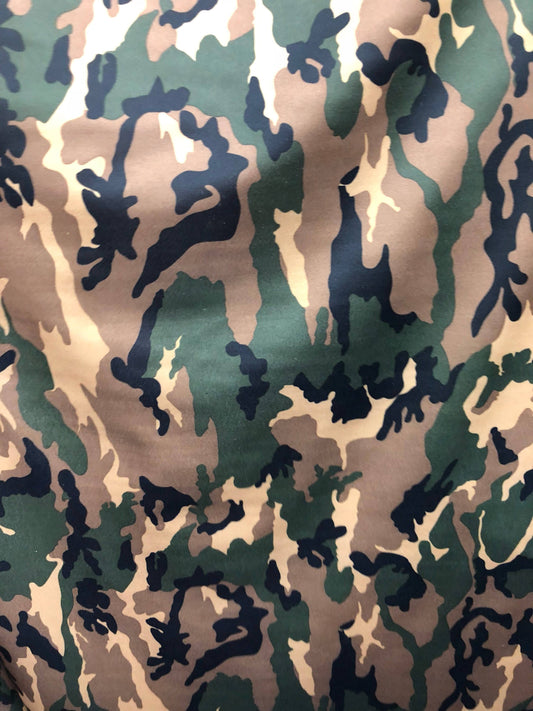 Camouflage design print on heavy nylon spandex 4-way stretch 58/60”