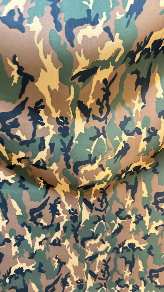 Camouflage design on nylon spandex 4way stretch 58/60" Sils by the YD. Ships worldwide from Los Angeles California USA