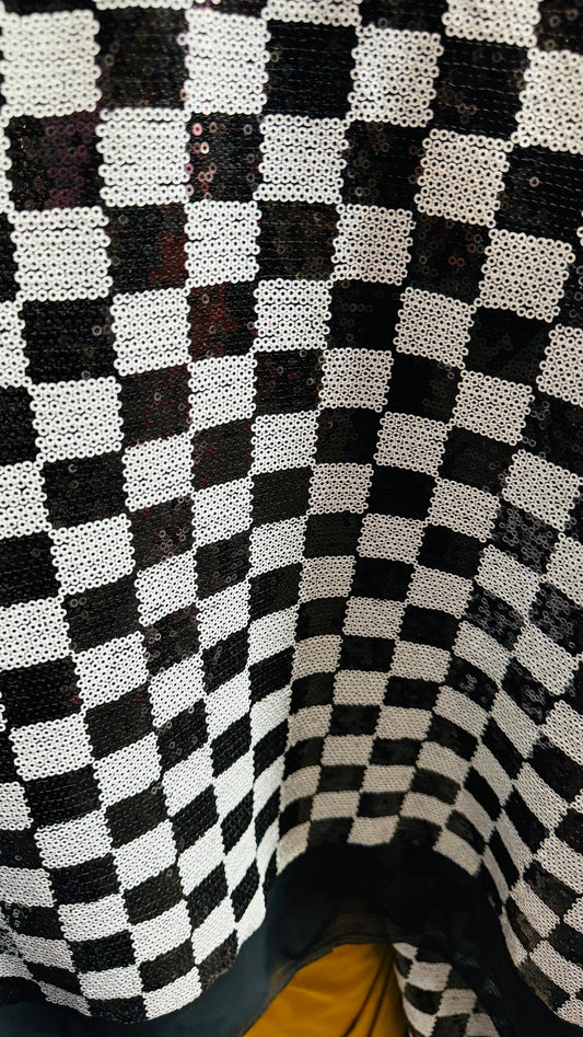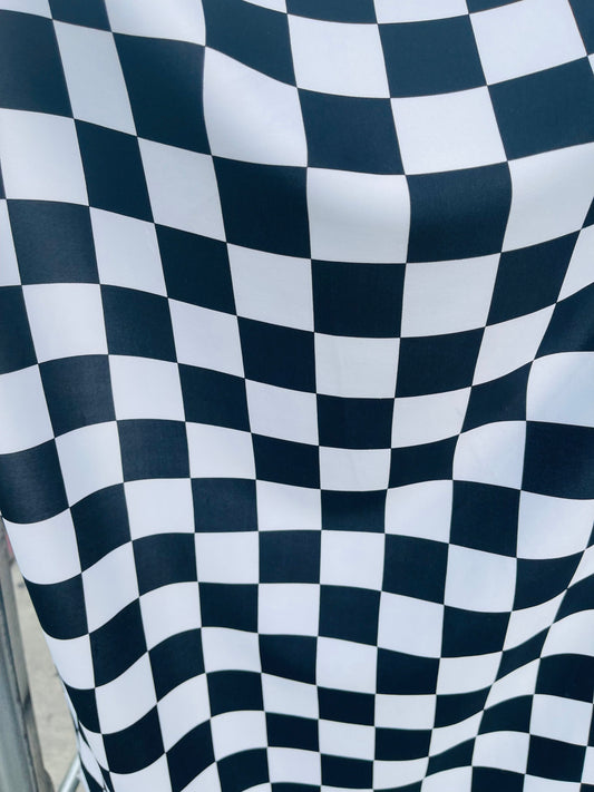 Checkers design White/Black print on great quality of power mesh 2-way stretch 58/60” Sold by the YD. Ships Worldwide from Los Angeles Cali