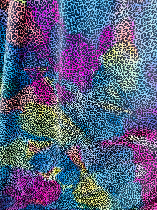 Cheetah design exotic animal print multicolor print on great quality of nylon spandex 4-way stretch 58/60” Sold by the YD. Ships Worldwide