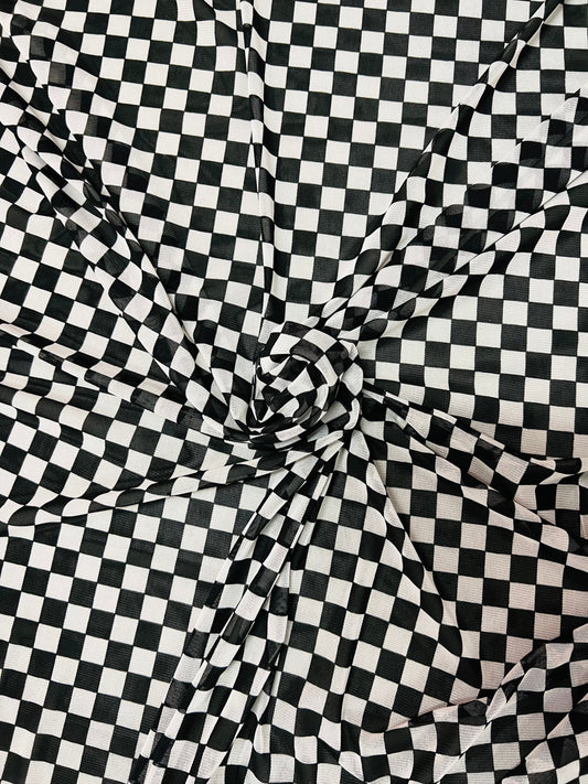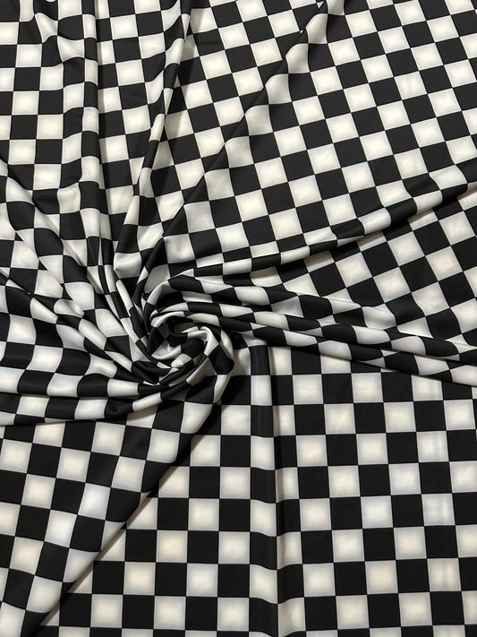Checkers design White/Black print on great quality of power mesh 2-way stretch 58/60”
