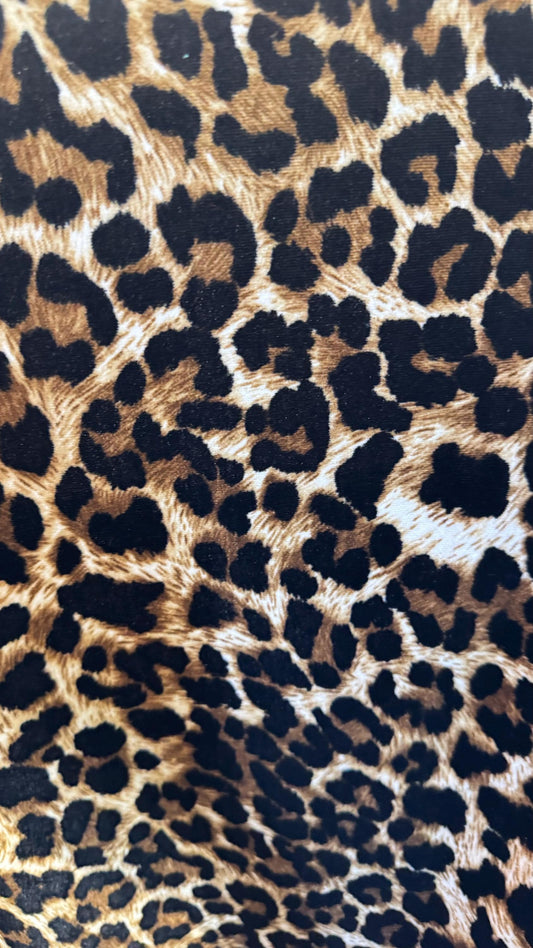 Cheetah design exotic animal print on nylon spandex flocking 4-way stretch 58/60” Sold by the YD. Ships Worldwide from Los Angeles CA