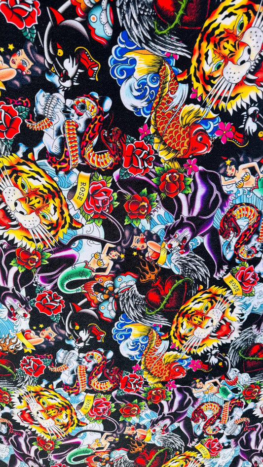 New Luxury stretch velvet with Japanese Tattoo design 4way stretch 58/60" Sold by the YD. Ships worldwide from Los Ángeles California USA.