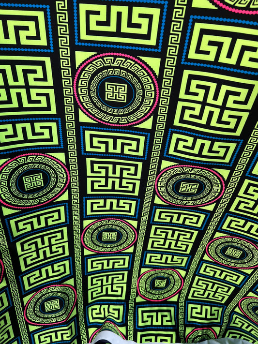 New modern brand fashion design Neon Pink & Neon green color print on poly spandex 2-way stretch 58/60” Sold by the YD. Ships worldwide