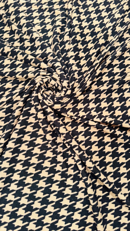 New Modern brand Houndstooth design print on sweater knit 2-way stretch 58/60” Sold by the YD. Ships worldwide from Los Angeles California