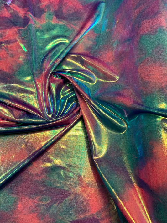 Cotton candy reptile design tie dye Hologram metallic on nylon spandex 4way strech 58/60" Sold by the YD. Ships worldwide from Los Angeles.