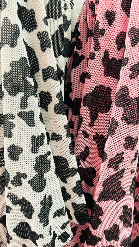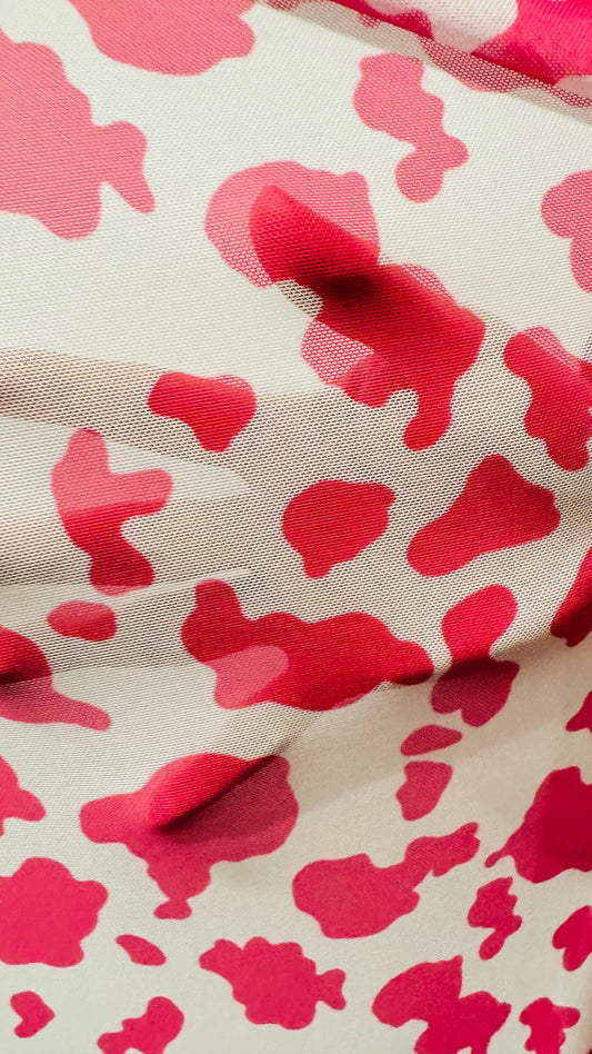 Cow design pink print on power mesh 4-way stretch 58/60” Sold by the YD. Ships Worldwide from Los Angeles California USA.
