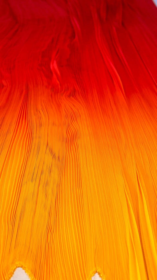 New Ombre design print on high quality of Silky chiffon pleated accordion style non stretch 58/60” Sold by the YD. Ships Worldwide