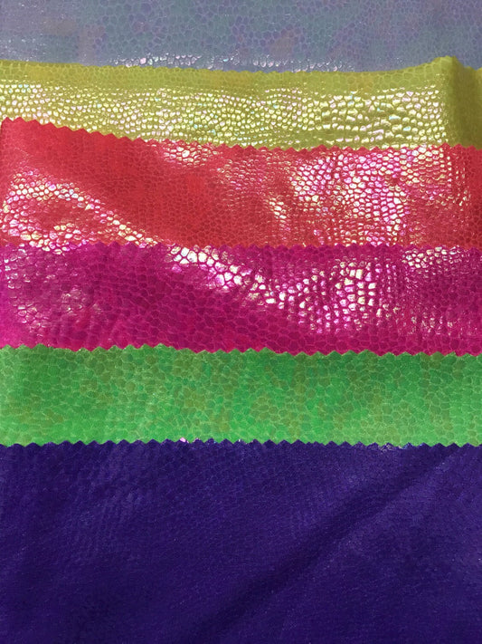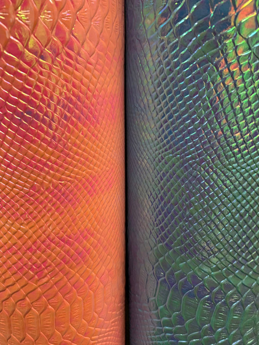 Crocodile design iridescent clear vinyl non stretch 50/52" Sold by the YD. Ships worldwide from Los Angeles California USA.