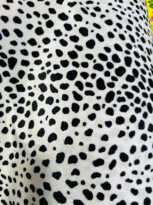 Dalmatian design print on best quality of stretch velvet 4-way stretch 58/60” Sold by the YD. Ships worldwide from Los Angeles California US