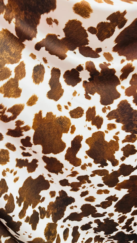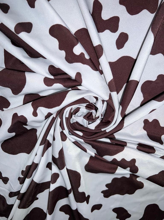 Cow Exotic design white/brown print on great quality of nylon spandex 4-way stretch 58/60” Sold by the YD. Ships Worldwide from Los Angeles