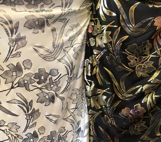 New snake design metallic Poly spandex 2-way stretch 58/60” Sold by the YD. Ships worldwide from Los Angeles California USA.