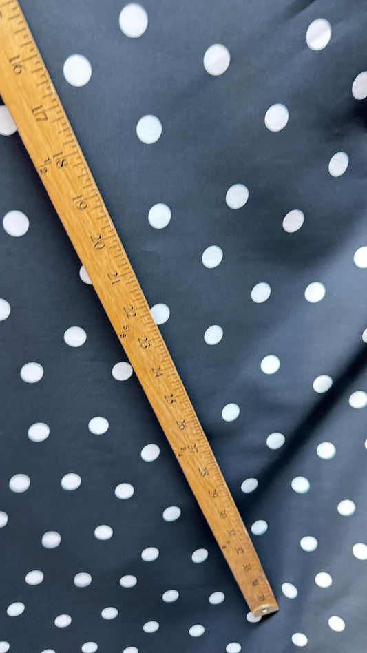 New spandex polka dots Design Black/white 4 way stretch poly spandex 58/60” Sold by the YD. Ships worldwide from Los Angeles California USA.