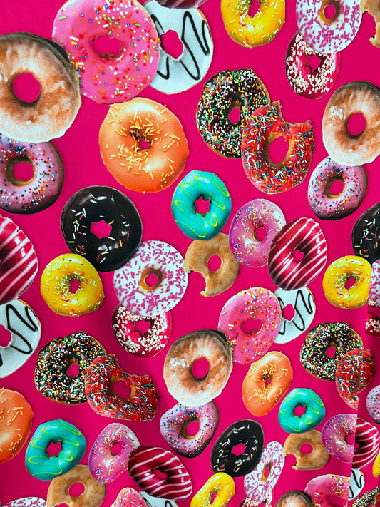Delicious Donuts design print on best quality of nylon spandex 4-way stretch 58/60” Sold by the YD. Ships Worldwide from Los Angeles cali