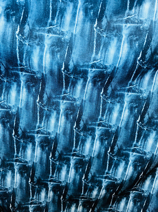 Deluxe Jeans Patch design print on nylon jumbo spandex 4-way stretch 58/60” Sold by the YD.