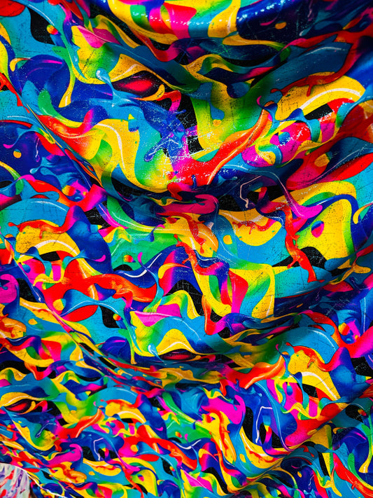 Deluxe Graffiti Pain design print on nylon spandex with foil 4-way stretch 58/60”