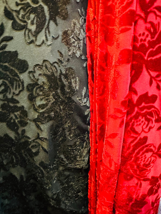Deluxe burnout flower design 4-way stretch velvet 58/60” High quality fabrics by AlexLAFabrics