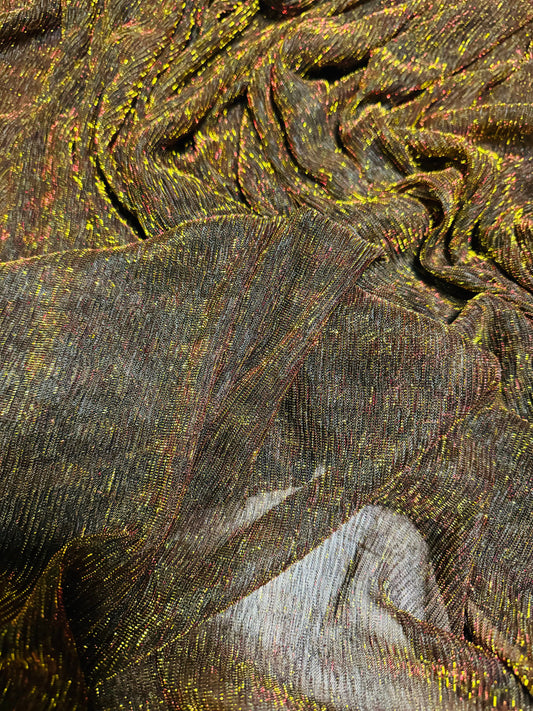 Deluxe iridescent metallic mesh red/gold 2-way stretch 58/60” High quality fabrics by AlexLAFabrics