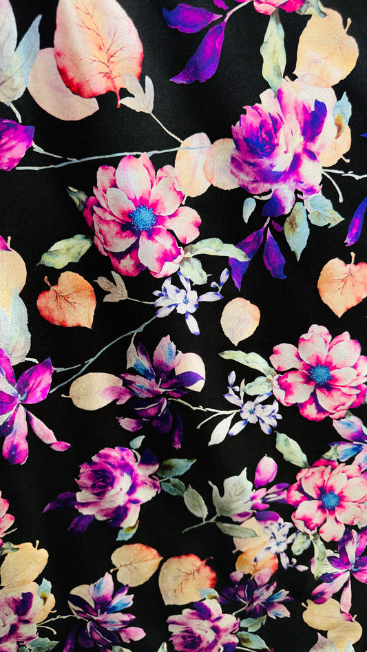 Deluxe Flower design on best quality of nylon spandex with foil 4-way stretch 58/60” High quality fabrics by AlexLAFabrics