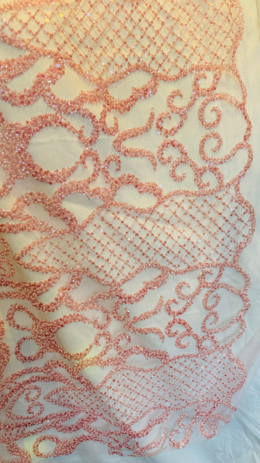 Deluxe Italian beaded lace design embroidered ok spandex mesh 4-way 55/57” High Quality fabrics by AlexLAFabrics