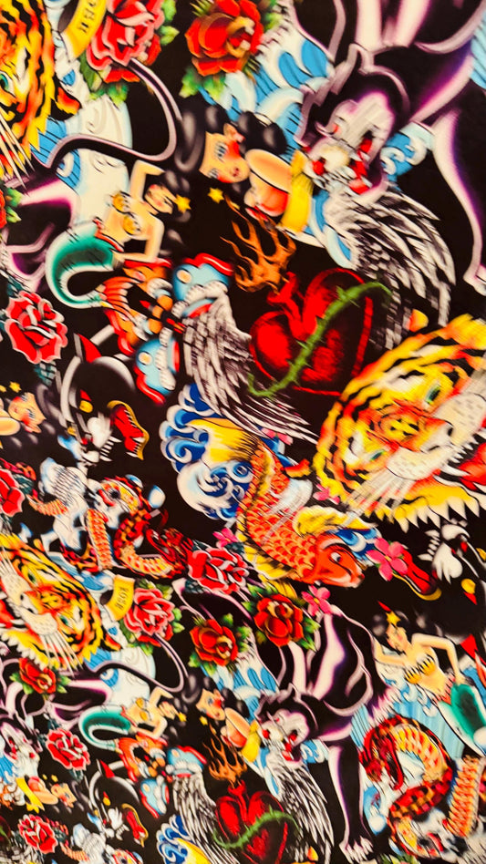 Deluxe Japanese Tattoo design print on Italian Jumbo nylon spandex 4-way stretch 58/60” High Quality fabrics by AlexLAFabrics