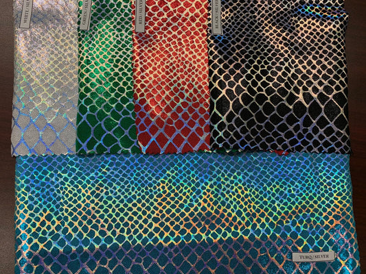 Dragón design hologram nylon spandex 4-way stretch 58/60” Sold by the YD. Ships Worldwide from Los Angeles California USA.