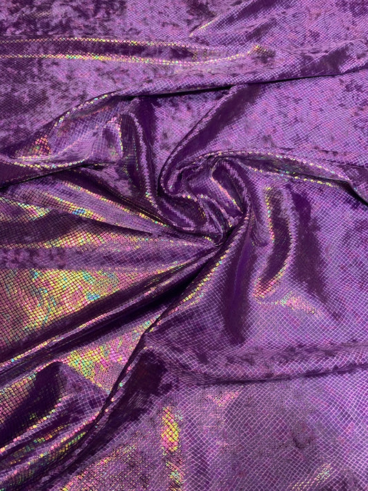 Dragon scales clear iridescent foil on heavy stretch velvet 420gsm 4way stretch 58/60" Sold by the YD. Ships worldwide from Los Angeles CA.