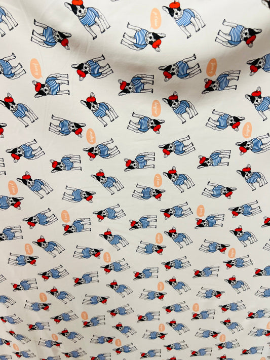 Dog design print on great quality of nylon spandex 4-way stretch 58/60” Sold by the YD. Ships Worldwide from Los Angeles California USA