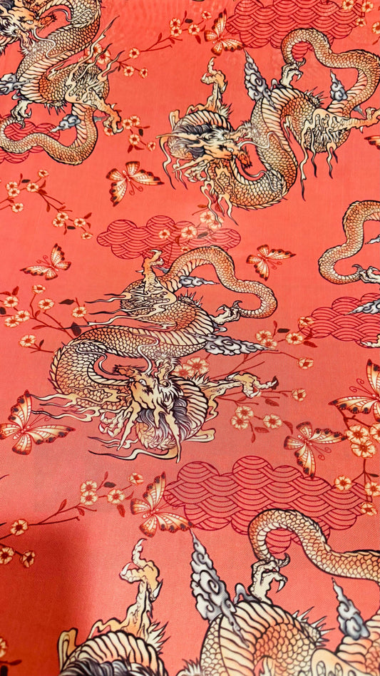 Dragon design Multicolor print on poly spandex light weight 4-way stretch 58/60” Sold by the YD. Ships Worldwide from Los Angeles California