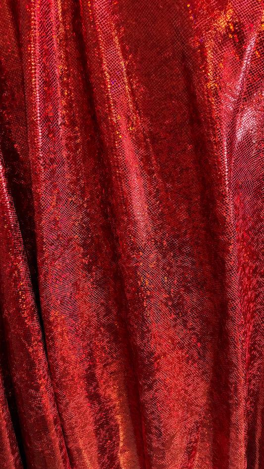 Shattered glass Red/Red hologram metallic foil on stretch velvet best quality in the market 2-way stretch 58/60” High quality fabrics