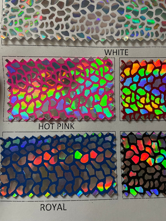 Dragon scales design with Iridescent clear foil on heavy stretch velvet 420g 4way stretch 58/60” Sold by the YD. Ships worldwide