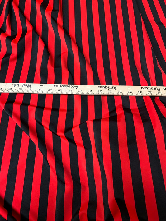 Stripe red/black nylon spandex 4way stretch 58/60" Sold by the YD. Ships worldwide from Los Angeles California USA.