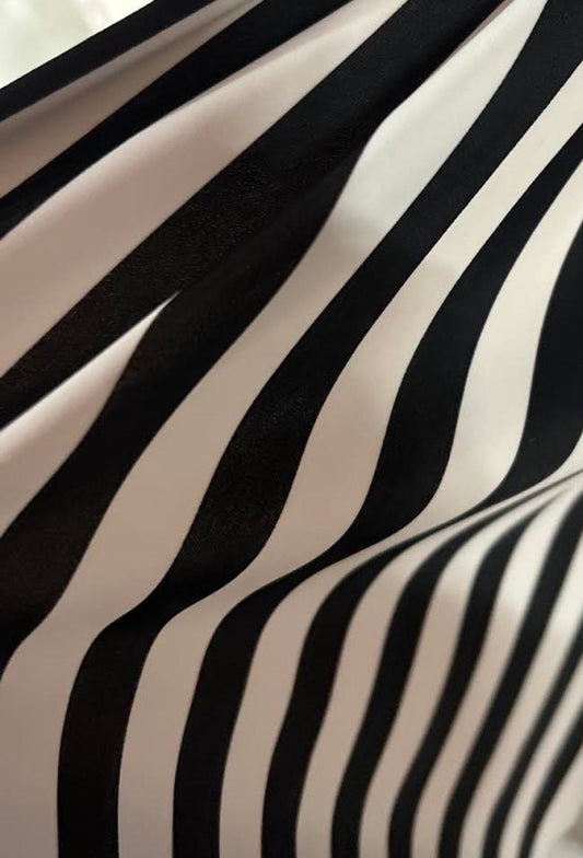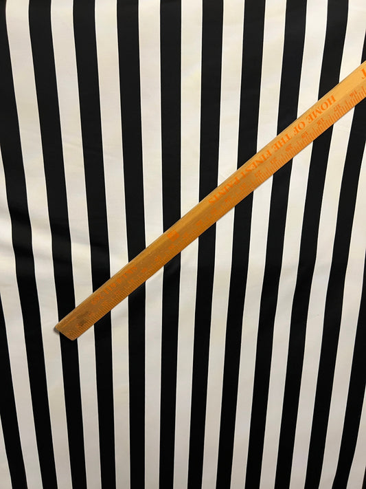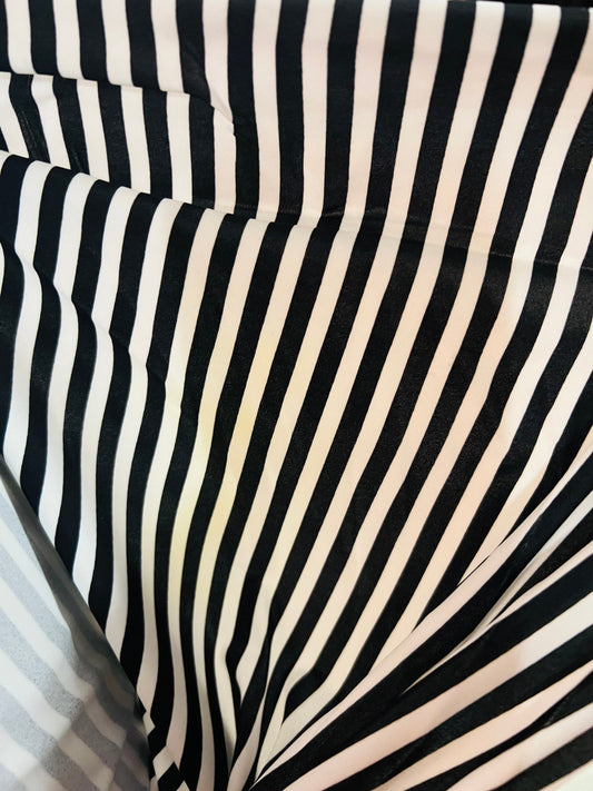 Striped design 1/2” White/Black print on great quality of nylon spandex 4-way stretch 58/60” Sold by the YD. Ships Worldwide from L.A