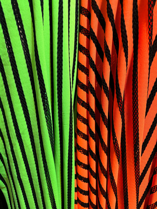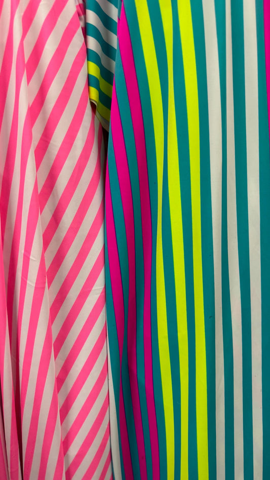 Stripes design 1/2” size Neon Color print on nylon spandex 4-way stretch 58/60” Sold by the YD. Ships Worldwide from Los Angeles California
