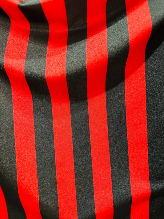 Stripes design red/black 1” print on best quality of nylon spandex 4-way stretch 58/60”