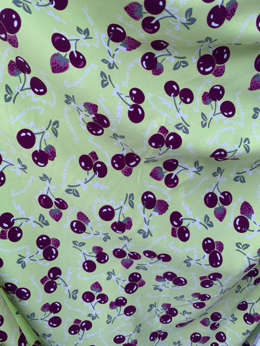 Sweet cherry design print on nylon spandex 4way stretch 58/60" Sold by the YD. Ships worldwide from Los Ángeles California USA.