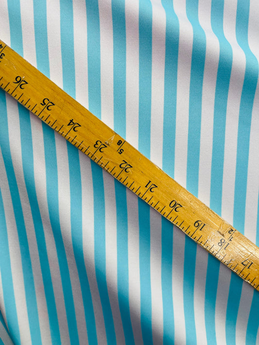 Stripes design Tiffany/white print on best quality of nylon spandex 4-way stretch 58/60” Sold by the YD. Ships Worldwide from Los Angeles CA