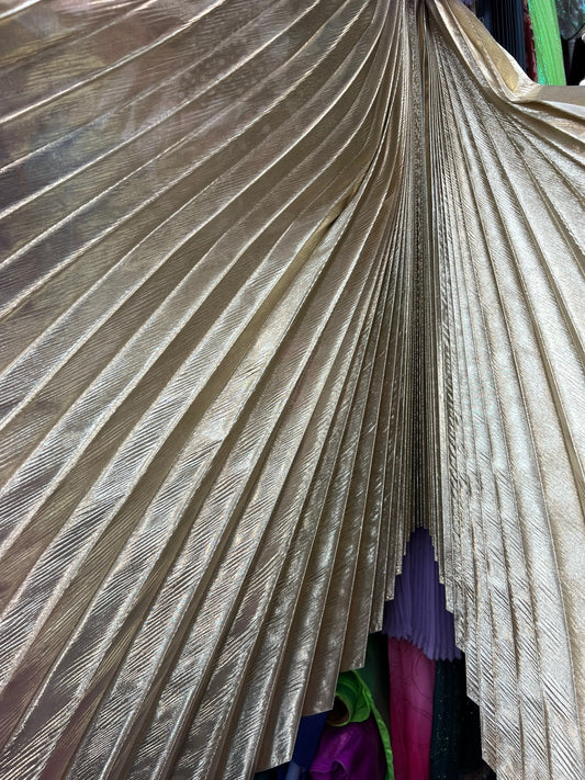 Sunburst pleated Luxury metallic lame non stretch 108” length by 45” width Sold by the PC. Ships worldwide from Los Angeles California USA
