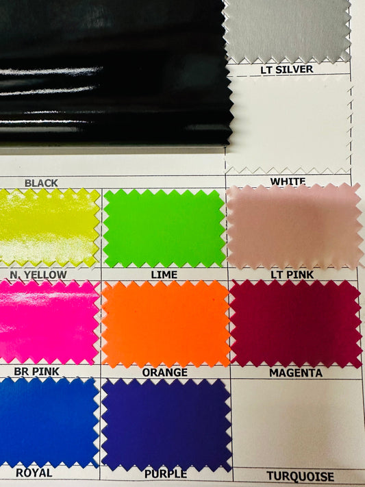 Super shiny stretch vinyl luxury quality nylon spandex 4-way stretch 58/60” Sold by the YD. Ships worldwide from Los Angeles California USA