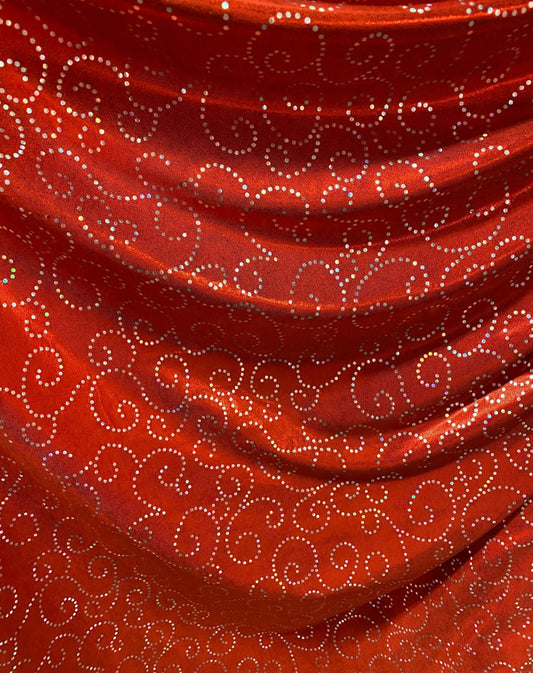 Swirl design hologram metallic nylon spandex with foggy foil 4-way stretch 58/60”