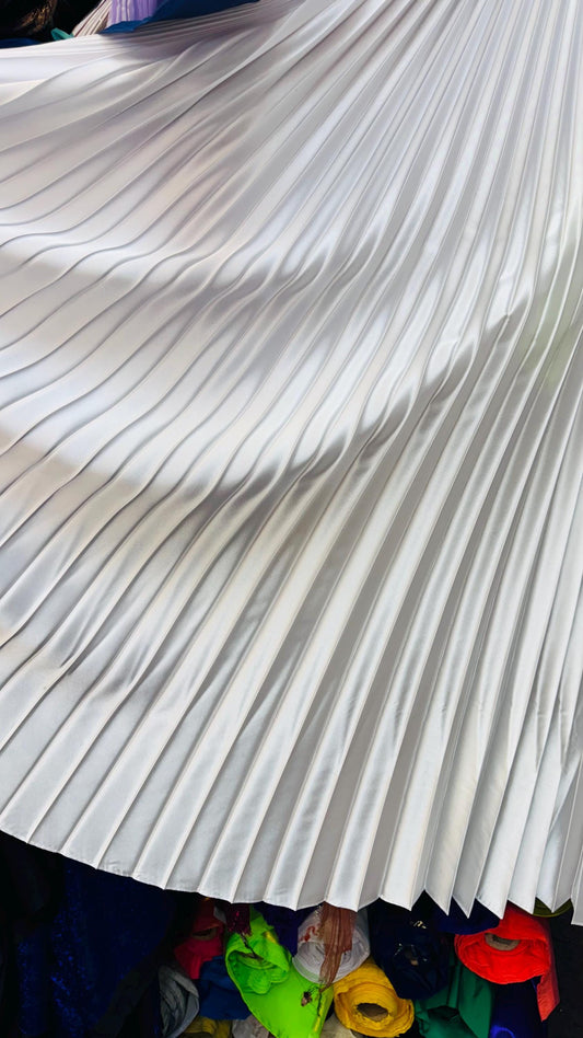 Sunburst pleated Super Shiny Satin non stretch 126” length by 58” width Sold by the PC. Ships worldwide from Los Angeles California USA
