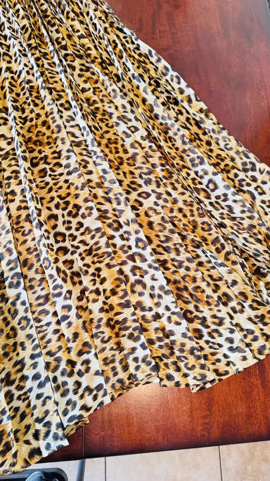 Sunburst pleated Silky Chiffon Cheetah Design non stretch 190” length by 60” width Sold by the PC. Ships worldwide from Los Angeles CA