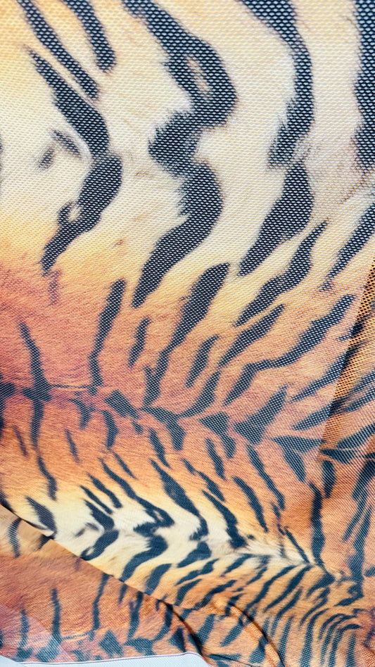 Tiger Exotic design on fishnet poly spandex 2-way stretch 58/60” High quality fabrics by AlexLAFabrics