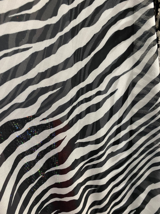 Zebra design exotic print on good quality of power mesh 4-way stretch 58/60” Sold by the YD. Ships worldwide from Los Angeles California USA