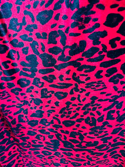 Wild leopard design red/black print on great quality of stretch velvet 4-way stretch 58/60”