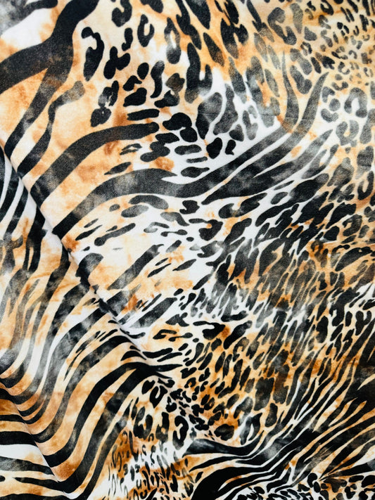Wild Leopard and Cheetah design small size print on great quality of stretch velvet 4-way stretch 58/60” Sold by the YD. High quality fabric